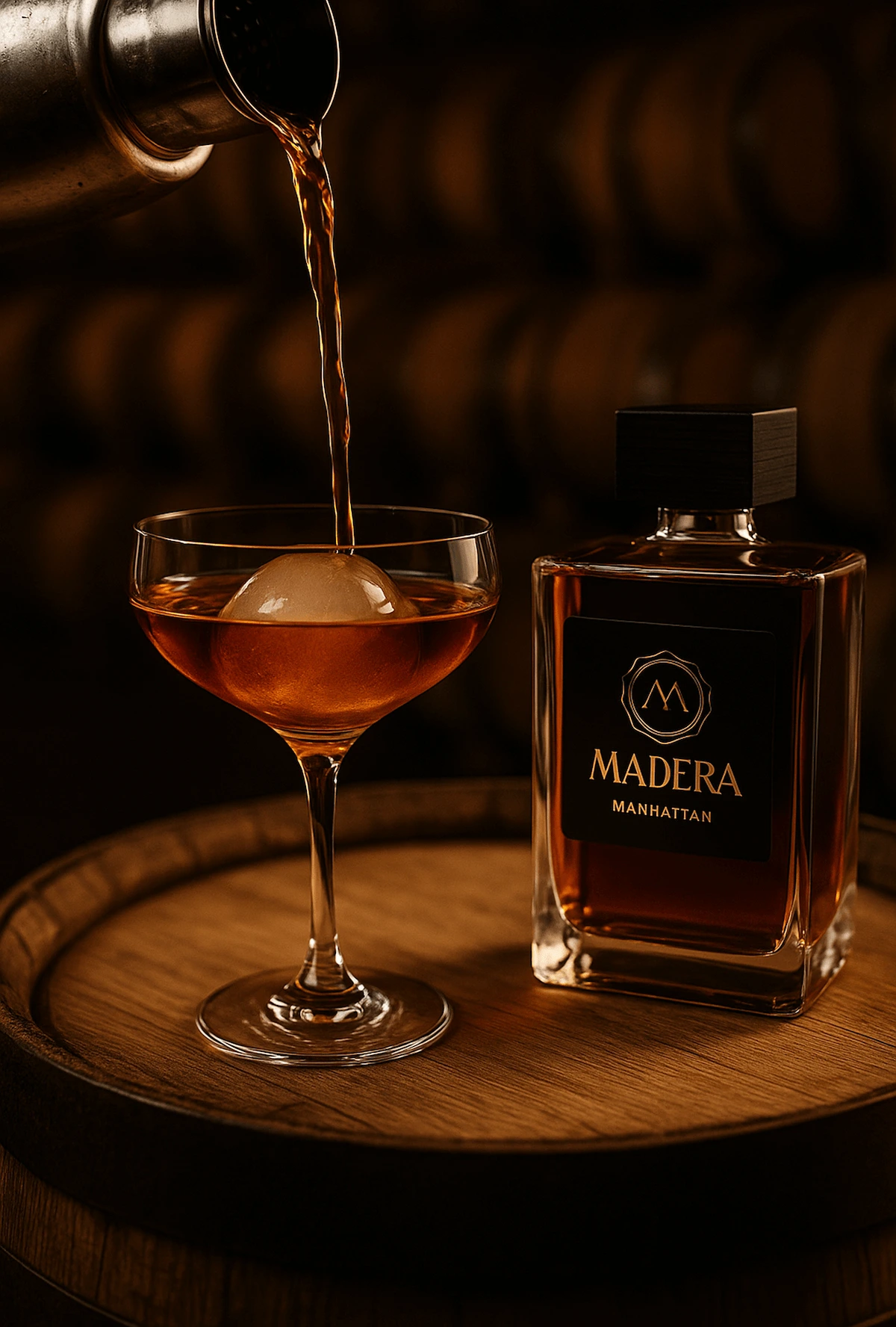 In the heart of my quest for perfection, spanning years of dedication and discovery, I present to you a Manhattan unlike any other. Madera is meticulously crafted to embody sophistication and timelessness; this premium blend captures the essence of luxury in every sip.